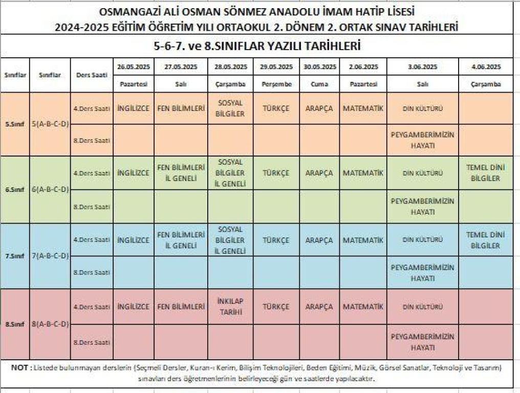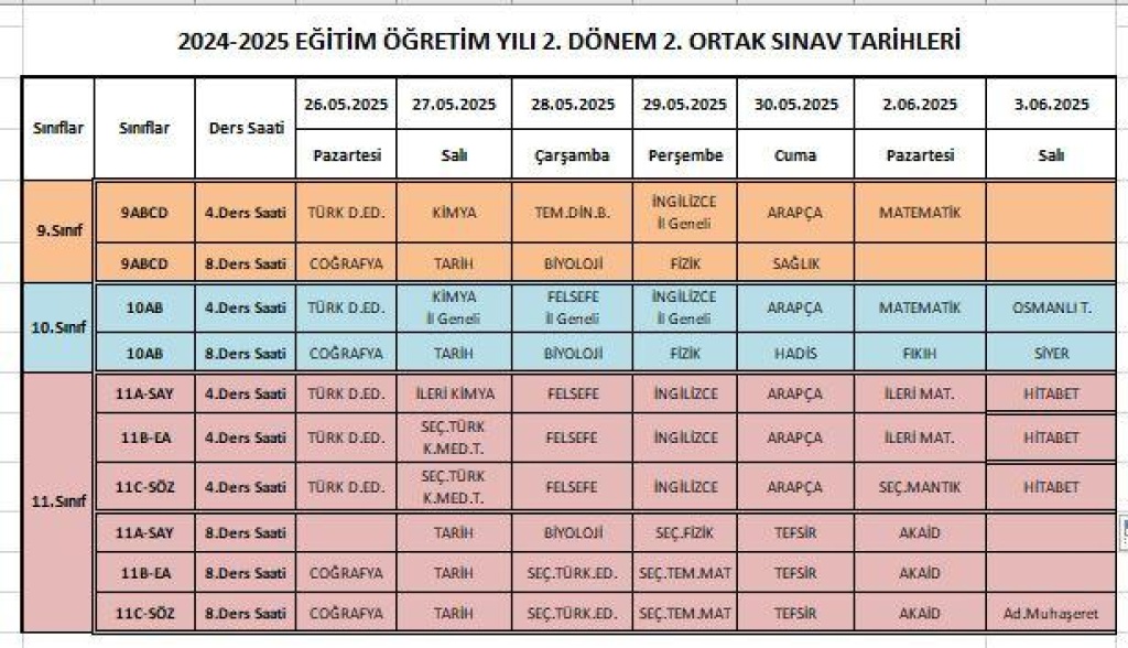 2024 - 2025 Eğitim Öğretim Yılı 2. Dönem 2. Sınav Programı